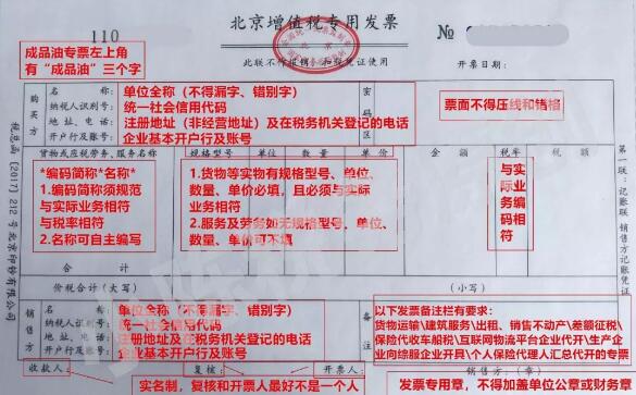 1、企業經營地址和注冊地址不一致,開具增值稅專用發票時應按照稅務登記證(統一社會信用代碼證)上的地址開具。 2、增值稅專用發票寫的是“開戶行及賬號”,所以開具增值稅專用發票時應填寫企業基本開戶行及賬號。 3、銷售方開具發票時,應如實開具與實際經營業務相符的發票,購買方取得發票時,不得要求變更品名和金額,也就是說賣啥開啥,不得變更,比如提供的是住宿費,開具“旅游服務”的發票。 4、嚴格按照《商品和服務稅收分類與編碼》開具發票,采用新系統開具的發票不能”辦公用品”、“材料一批”、“禮品”出現這樣的籠統開具行為,比如《商品和服務稅收分類與編碼》中有一個明細類別是“紙制文具及辦公用品”,因此,發票摘要寫“紙制文具及辦公用品”是符合規范的,但是只寫“辦公用品”是不符合規范的。 5、發票上的單價數量,按相關稅法規定發票信息需要依次據實填寫,銷售貨物,需要將單價、數量、金額體現在發票上;如果屬于服務勞務,確實沒有單位數量的可以不體現。 6、由于開票時有限額,銷售貨物不能一次性全開,分開開具發票時,會出現數量是小數,比如“0.4臺”,只要分開開具的發票數量總額是與實際銷售數量相符即可。 7、增值稅專用發票開票人的填寫,稅務上沒有要求,但建議最好如實填寫開票人員姓名,特別是收到一些相對企業來說大額的增值稅專用發票,開票人最好不要是“管理員”,順便提醒一下取得一些新成立商貿企業(查當地工商局網站就知道是不是新成立的)開具的大額增值稅專用發票,且開票人是“管理員”,要特別提高警惕。 8、增值稅發票“開票人”和“復核”能否是同一個人,稅務上沒有要求,但是從內控管理的角度,“開票人”和“復核”應該不是同一個人,特別是收到一些相對企業來說大額的增值稅專用發票,“開票人”和“復核”最好不要是同一個人。 9、成品油專用發票在發票的左上角有“成品油”三個字。 以上僅供參考,如當地稅務部門有不同管理要求,按照其要求執行。 3、這些發票新規定,你不得不知的問題 前段時間,國家稅總局發布新文件出臺《企業所得稅稅前扣除憑證管理辦法》,明確了發票不再屬于唯一扣稅憑證了,但也要提醒大家,現金支付可能不能稅前扣除。