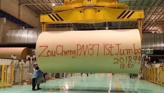 9月4日18:50分,山東太陽宏河紙業(yè)二期高檔板紙包裝紙工程項(xiàng)目第二條生產(chǎn)線(37號(hào)機(jī))出紙成功,該紙機(jī)由德國福伊特公司提供,紙機(jī)幅寬6660mm,設(shè)計(jì)年產(chǎn)能40萬噸低克重高強(qiáng)瓦楞紙。