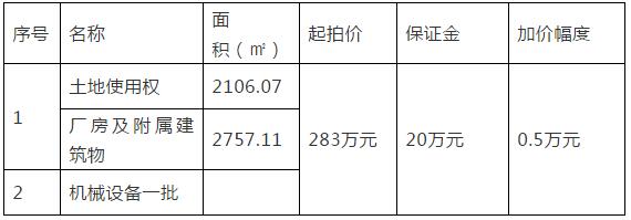 注: 1、其中約370.34平米附屬建筑(配電房、廁所以及移動(dòng)板房結(jié)構(gòu)的廠房)未辦理房產(chǎn)證。2、機(jī)械設(shè)備含:韻翔牌雙色電腦水墨印刷開槽一體機(jī)組一臺(tái)、瑞杰平壓壓痕切線機(jī)一臺(tái)、四聯(lián)開槽切角機(jī)一臺(tái)、FGX瓦楞紙板分紙滾線機(jī)一臺(tái)、電動(dòng)單梁(懸掛)起重機(jī)一臺(tái)。