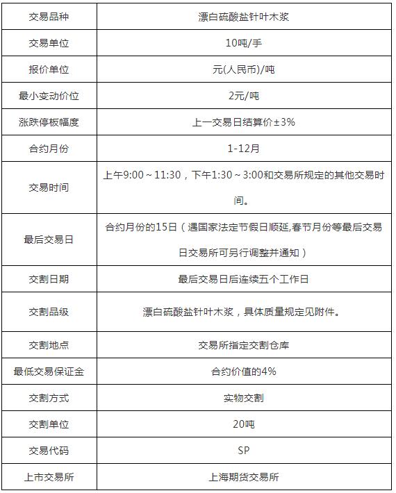 歷時5年的籌備,我國紙漿行業(yè)首個期貨合約產(chǎn)品離最終上市又邁進了一步,合約標的物為漂白硫酸鹽針葉漿,該產(chǎn)品在我國幾乎全部需要進口,對外依存度接近100%。 上海期貨交易所(下稱“上期所”)10月11日在官網(wǎng)發(fā)布通知,就紙漿期貨合約及相關(guān)規(guī)則公開征求意見。 此次公開征求意見的是《上海期貨交易所漂白硫酸鹽針葉木漿期貨合約》。根據(jù)此次公布的紙漿期貨合約(征求意見稿),紙漿期貨合約交易單位為10噸/手,最小變動價位為2元/噸,漲跌停板幅度為上一交易日結(jié)算價±3%及《上海期貨交易所風險控制管理辦法》相關(guān)規(guī)定,最低交易保證金為合約價值的4%,交割單位為20噸,合約月份為1-12月。 就目前的紙漿行業(yè)來說,仍然保持著上游漿廠、中間貿(mào)易商和下游紙廠的傳統(tǒng)貿(mào)易模式,紙漿期貨上市這種模式將轉(zhuǎn)變?yōu)椤爱a(chǎn)業(yè)+金融”模式,紙漿期貨的上市將提高紙漿價格發(fā)現(xiàn)能力,增強我國紙漿的定價權(quán),提高周邊市場的價格滲透度。市場人士分析認為,推出紙漿期貨交易,將有效發(fā)揮期貨市場的價格發(fā)現(xiàn)功能和套期保值功能,有利于促進紙漿行業(yè)市場化定價機制的形成,為產(chǎn)業(yè)鏈上下游企業(yè)提供風險管理工具。 上海期貨交易所漂白硫酸鹽針葉木漿期貨合約(征求意見稿)