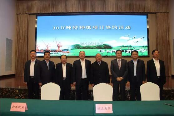 30萬噸特種紙項目簽約活動現(xiàn)場 據(jù)了解,30萬噸特種紙項目將總投資10億元,一期投資5.8億元,新建廠房及附屬設(shè)施10萬平方米,采用國內(nèi)先進的工藝技術(shù)及裝備,其技術(shù)裝備水平達(dá)全國一流,全部投產(chǎn)達(dá)效后,可年產(chǎn)30萬噸特種紙。 近年來,勝達(dá)集團加大了在黃沙港鎮(zhèn)的投資,今年5月份,總投資5億元的年產(chǎn)21.6萬噸包裝紙項目中的第一臺紙機正式投產(chǎn),該條生產(chǎn)線凈紙幅寬4600mm,設(shè)計車速500m/min,主要生產(chǎn)低克重高強瓦楞紙,產(chǎn)能可達(dá)10.8萬噸/年。