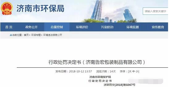10月9日,山東省濟南市環保局公示了對濟南魯宏包裝制品有限公司的行政處罰決定書。據顯示,濟南魯宏包裝制品有限公司因生產加工項目需要配套建設的環保設施未驗收,但主體工程卻已投入生產,被責令改正,并處以罰款貳拾萬元。 實際上,包裝廠因未通過環保驗收手續即投產而遭到環保局罰款的事件在今年已多次發生。因此,在這方面,包裝企業一定要多加注意!