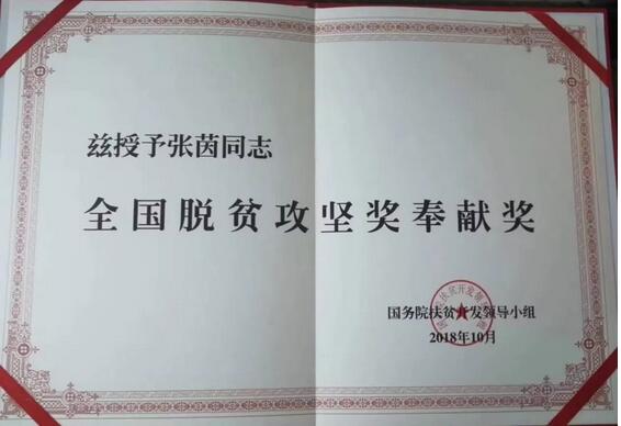 10月17日,2018年全國脫貧攻堅獎表彰大會暨首場脫貧攻堅先進事跡報告會在北京舉行,來自東莞的張茵榮獲全國脫貧攻堅獎奉獻獎。