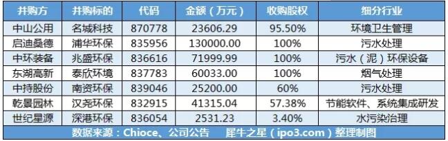 2018年上半年新三板環保行業業績前十企業名單 環保并購火熱 新三板成重要標的池 盡管環保行業最近面臨著融資難、資本市場表現不佳等問題,然而從并購市場表現看,2018年上半年環保行業兼并重組卻依然活躍。 相關數據顯示,截止2018年7月31日,環保市場共計發生并購50起,涉及金額達334.27億元(僅計算披露金額)。而2017年全年環保市場共計發生385億元的并購金額,由此可見,2018年并購態勢不減。 今年9月,上市公司中國天楹(000035)88億天價收購歐洲環保巨頭Urbaser更是將環保并購推向高潮,讓環保產業這塊“香餑餑”吊起了更多人的胃口。 縱觀被收購標的,其中新三板企業備受A股上市企業青睞。據犀牛之星研究中心統計,截止目前,除已停止實施的3起并購案例,環保市場共發生7筆上市公司并購新三板公司的交易,交易金額達35.47億元。7筆并購交易中,6筆交易金額均在2億元以上。