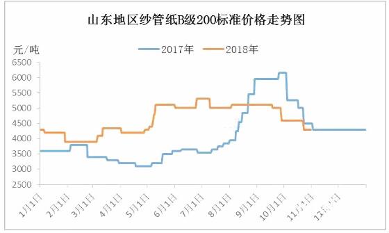 進入10月份以來,紗管紙市場整體呈下滑趨勢,紙廠多下調100-400元/噸,目前山東地區紗管紙360-510g/200標準報4300元/噸左右。紙廠國慶期間多停機3-10天,截止到月底各地紙廠多已正常開機生產。下游市場交投平淡,紙廠多積極出貨,成交讓利較多,隨著成交重心不斷下移,市場交投氛圍略有回溫。 下游紙管廠表示今年接單情況不樂觀,各地紙管廠業務量同比去年下降30%以上。尤其是紡織及化纖行業,由于之前環境治理多數小廠已停產,再加上今年出口量的減少,紗管紙使用量減少較多。2017年8月份紗管紙價格開始上調,一直到10月份價格到達高位,部分紙管廠表示8-9月份旺季來臨之前有所備貨,然而今年旺季不旺,下游需求不樂觀,紙管廠庫存消化一般,近期拿貨積極性不高,剛需采購為主。 上游原料廢舊黃板紙價格中秋急速跳水,雖在國慶后有所反彈,但幅度不大,對紗管紙市場影響一般。10月18號國家公布第22批進口廢紙審批額度201萬噸,消息面上對國廢形成壓力,市場看空心態加重,加上打包站也加快出貨節奏,廢舊黃板紙價格一路下跌,紗管紙市場價格隨之下調。本周末開始廢舊黃板紙開始企穩,部分地區出現反彈,然而成本面支撐動力不足,紗管紙市場暫時觀望為主。 雖近期廢舊黃板紙開始反彈,但是紗管紙市場下游需求整體改觀不大,市場拉動力不足。卓創預計,原料廢舊黃板紙后期仍存下跌風險,11月份紗管紙市場依舊弱勢運行,市場價格或繼續下調。