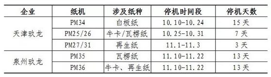 在這種局勢(shì)之下,以玖龍為代表的紙企,近期陸續(xù)發(fā)布停機(jī)計(jì)劃,天津玖龍10月中下旬停機(jī)數(shù)天,泉州玖龍2臺(tái)紙機(jī)11月中下旬計(jì)劃停機(jī)13天。