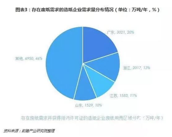 此外,中國海關總署的統計數據顯示,2017年廢紙進口量為2572萬噸。這2572萬噸的廢紙進口中造紙大省廣東的進口量占比就達到了26%,江蘇、浙江、山東和福建等沿海城市的廢紙進口量占比均較高,這四大省份的合計占比達到56%。進口廢紙政策收緊對于這五大廢紙需求大省的影響最為明顯。  根據相關機構統計,這1669家造紙企業的廢紙理論最大使用量為1.51億噸/年。而按照70%產能利用率測算我國的廢紙需求量在7500-8000萬噸之間。事實上,商務部的統計數據顯示,我國目前的廢紙回收量在5300萬噸左右,遠遠無法滿足國內造紙的需要。 廢紙缺口至少在3000萬噸以上提高廢紙回收率迫在眉睫 外廢進口被逐步禁止的同時,我國廢紙回收體系尚未完善,目前廢紙回收量率較低,廢紙需求缺口將不斷擴大。有監測數據顯示,我國廢紙利用率已經達到70%以上,2017年廢紙利用率為70.6%。但2017年我國廢紙回收率僅48.5%,遠遠低于發達國家70%的水平。 以往廢紙需求的缺口主要依靠廢紙進口來填補,而2010年以來我國廢紙的進口量均超過2500萬噸左右。這意味著隨著“禁廢令”和外廢進口零目標的持續推行,到2020年我廢紙需求缺口至少在2500萬噸以上。 加上國內產能利用率提高對我國廢紙的潛在需求,有機構預計2020年我國廢紙需求量缺口至少在3000萬噸以上。在廢紙進口這條渠道被截斷的情況下,3000萬噸的廢紙缺口只能通過提高國內的廢紙回收量來填補。因此,完善我國廢紙回收體系,提高廢紙回收率迫在眉睫。