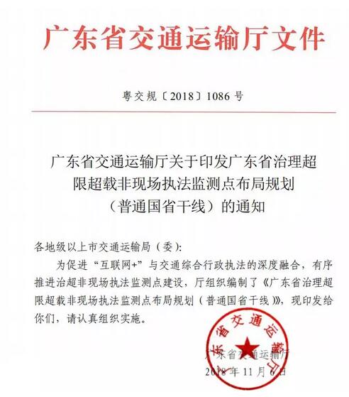 導(dǎo)語:廣東將在全面實(shí)施高速公路治超非現(xiàn)場執(zhí)法的基礎(chǔ)上,推廣實(shí)施普通公路治超非現(xiàn)場執(zhí)法,計(jì)劃用5年時(shí)間,在全省普通國省干線公路建設(shè)362個(gè)執(zhí)法監(jiān)測點(diǎn),總投資大約75900萬元,也就是7個(gè)多億!為了治超可以說真的下了血本! 廣東治超下血本!投資7個(gè)多億,布局362個(gè)監(jiān)測點(diǎn)!全省24小時(shí)抓拍 11月6日,廣東省交通運(yùn)輸廳召開全省普通公路治超非現(xiàn)場執(zhí)法示范推廣暨高速公路治超非現(xiàn)場執(zhí)法總結(jié)工作會(huì)議。 會(huì)議明確,廣東將在全面實(shí)施高速公路治超非現(xiàn)場執(zhí)法的基礎(chǔ)上,推廣實(shí)施普通公路治超非現(xiàn)場執(zhí)法,并計(jì)劃用5年時(shí)間,在全省普通國省干線公路建設(shè)362個(gè)執(zhí)法監(jiān)測點(diǎn)。