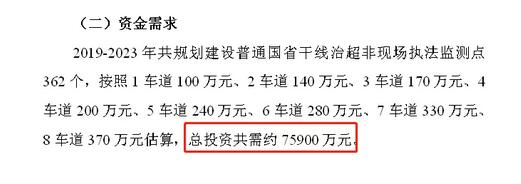 從官方發(fā)布的文件中可以看到,修建362個(gè)監(jiān)測點(diǎn)也是耗費(fèi)巨大,總投資大約要花費(fèi)75900萬元,也就是7個(gè)多億!為了治超可以說真的下了血本!