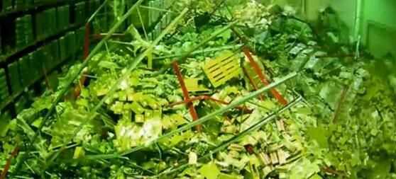 從視頻可以看出,第一個倒塌貨架引發(fā)了多米諾骨牌效應,與之相鄰的整座倉庫貨架先后坍塌,紙箱堆積成山,叉車早已被埋得看不見影蹤。