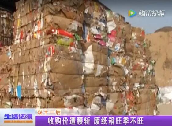 導(dǎo)語:日前,山東省淄博電視臺生活頻道《生活法眼》節(jié)目做了一期“收購價遭腰斬,廢紙箱旺季不旺”的專題報道。廢紙收購價跌了近1000元,現(xiàn)在都賠錢了,廢紙收購站有些吃不消。但春節(jié)前廢紙價格或小幅上漲50-100元/噸。