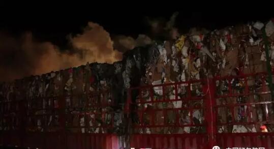 10分鐘后,路政人員到達事故現場,發現事故貨車停在港灣內,車上裝載的壓縮紙箱已燃起明火,火苗從貨物中間不斷竄出,現場濃煙滾滾。