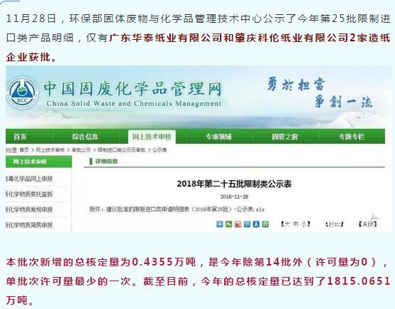 又到了年終收關(guān)階段,包裝紙行業(yè)經(jīng)歷了一個(gè)混沌的逢8之年。在尾聲階段,受到包裝紙需求異常疲軟的影響,各大紙企紛紛采取了停機(jī)保價(jià)的策略,受此影響,國(guó)廢價(jià)格持續(xù)低迷,紙價(jià)易跌難漲。 鑒于今年進(jìn)入原紙大增和實(shí)際需求萎縮的影響,造紙行業(yè)對(duì)進(jìn)口外廢的需求興趣不大,1800萬(wàn)噸的批文,實(shí)際上遠(yuǎn)超預(yù)期,因此,今天環(huán)保部固體廢物與化學(xué)品管理技術(shù)中心公布的本年第25批外廢批文中,僅有一家企業(yè)獲得了4355噸。
