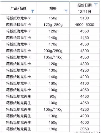 導語:進入12月,部分紙廠又開始放出漲價消息,例如3日起東莞玖龍宣布?垺⑼呃慵垉r格上調50元/噸,東莞金州宣布箱板紙、瓦楞紙價格上調50元/噸,東莞上隆、東莞旭豐、東莞順裕高瓦上調50元/噸等,目前此輪漲價多集中在廣東地區,在緩慢執行中,是否大面積落實還需要進一步密切關注。