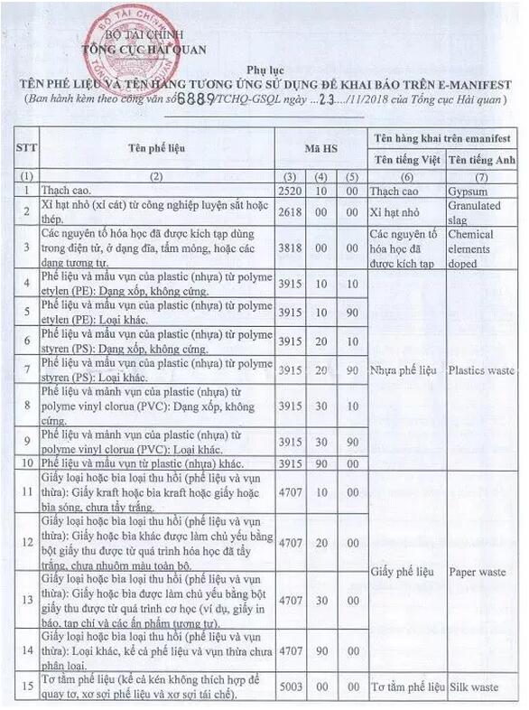 隨著中美貿易戰(zhàn)的持續(xù)升溫,“鷸蚌相爭,漁翁得利”,越來越多的跨國公司將他們的生產線轉移到周邊國家,比如:越南。現在越南既希望抓住巨大的機遇,增加財政收入,促進制造業(yè)發(fā)展,又不愿過多的垃圾進入本國,影響生態(tài)環(huán)境和政治穩(wěn)定。對于此種情況,越南海關近日發(fā)布了一則新的規(guī)定,在允許廢料進口的情況下,增加一些把控要求。 在廢紙(Paperwaste)中,中國明確禁止的混合廢紙(稅則號為47079000),在越南仍然屬于可進口的廢料。其他47071000,47072000和47073000,與中國一樣,都可以正常進口。這對正在或者計劃到越南進行原紙生產或廢紙漿生產的中國企業(yè)來說,無疑是一個好消息。 相關通知內容如下: