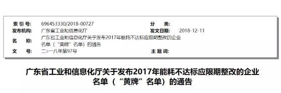 廣東省2017年能耗不達(dá)標(biāo)應(yīng)限期整改的企業(yè)名單(“黃牌”名單)