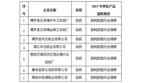 廣東發(fā)布2017年能耗不達(dá)標(biāo)企業(yè)名單,4家包裝紙廠在列