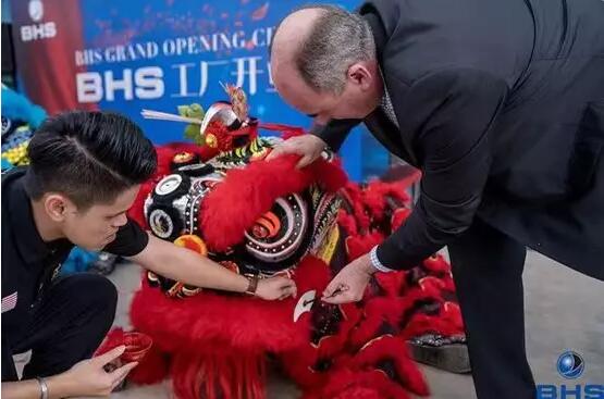 △Daly先生親自為新獅點睛 本次勵展博覽集團代表榮幸受邀參加此次工廠開放日,并代表集團旗下中國國際瓦楞展贈與ChristopherDaly先生紀念禮品,以此感謝BHS整個集團對于中國國際瓦楞展一如既往的支持,同時也預(yù)祝BHS馬來西亞工廠開業(yè)大吉!