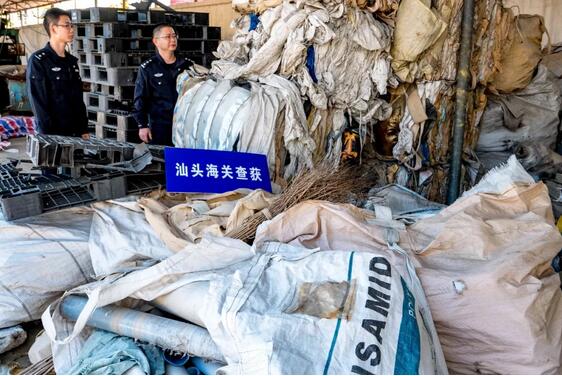 汕頭海關 汕頭海關兵分6組,分別在汕頭、佛山、深圳等地統一開展抓捕行動,抓獲主要犯罪嫌疑人3名,現場查獲廢塑料約150噸,扣押書證以及電子證據材料一批,成功摧毀以林某為首的利用他人固體廢物進口許可證,走私廢塑料等固體廢物進境的犯罪貨主團伙3個。