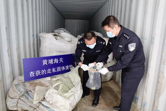 黃埔海關 黃埔海關共分成9個行動小組,在廣州、東莞、西雙版納等地同步開展行動。截至目前,行動一舉打掉4個走私固體廢物犯罪團伙,抓獲犯罪嫌疑人5名,刑事立案5起,現場查扣廢礦渣、廢電腦機箱等240余噸,查獲涉案單證一批,查證涉嫌走私進口固體廢物950多噸。