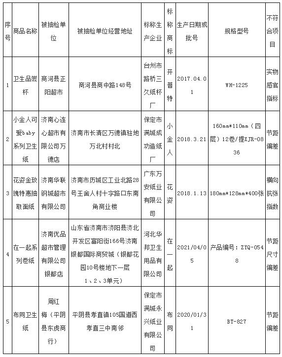 濟(jì)南市工商局流通領(lǐng)域紙制品類商品質(zhì)量抽查檢驗(yàn)不合格名單