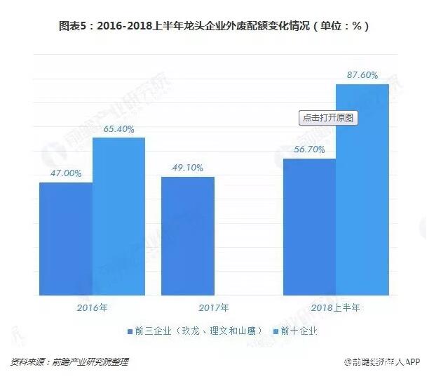 具體來看,2018年以來雖然造紙龍頭企業的進口總額度也呈下降趨勢,但是龍頭企業進口配額在全國總額度中的比重明顯提升。 據統計,2018上半年前三家(玖龍、理文、山鷹)配額從2016年47.0%提升到2017年49.1%以及2018年的56.7%,前十企業占比從2016年的65.4%上升至87.6%。獲得配額的企業數由160家下降至目前的77家。