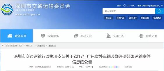 另外,12月20日,深圳交委發(fā)布通知,擬對3021輛省外涉嫌違法超限運輸車輛進行處罰!超限超載,秋后算賬,一個都逃不了!