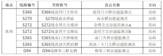 注:S256線(K66+200)路段大致位置在江龍大道下圍村路段 根據(jù)部署,廣州近期還將建設以下4處監(jiān)測點: