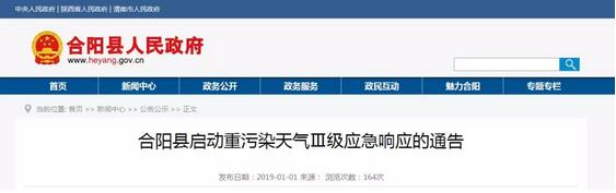 經陜西省重污染天氣應急指揮部辦公室與省環境空氣質量預測預報中心1月3日15時會商研判:2019年1月3日至6日,關中地區受靜穩、逆溫、高濕等極端不利氣象條件影響,大氣擴散條件差,污染物持續累積,空氣質量持續轉差。預計3日至6日西安、咸陽、渭南、西咸、寶雞等城市可能出現連續重度及以上污染過程,其中西安、咸陽、西咸、渭南可能出現2~3天嚴重污染。7日開始,受冷空氣影響,關中地區大氣擴散條件自西向東逐漸好轉,區域各城市空氣質量將改善至良到輕度污染。 按照《陜西省重污染天氣應急預案》(陜環函〔2017〕231號)和《2018年陜西省重污染天氣應急預案修訂方案》(陜環大氣函〔2018〕71號)的規定,決定自1月3日17時發布關中地區紅色預警。 要求各市(區)接到通知后,立即做好相關應急準備工作,盡早啟動重污染天氣Ⅰ級應急響應。 合陽縣啟動重污染天氣Ⅲ級應急響應的通告