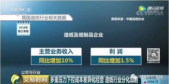 造紙、包裝業(yè)廣泛用于各個領(lǐng)域,被稱為“社會和經(jīng)濟(jì)晴雨表”,然而在近段時間卻遭遇了異常低迷的市場行情。2019年1月4日,央視財(cái)經(jīng)《交易時間》欄目推出重磅報道,指出紙漿期貨上市以來量價齊跌,造紙、包裝企業(yè)產(chǎn)銷雙降。 在報道中,央視財(cái)經(jīng)團(tuán)隊(duì)深度調(diào)查了造紙廠、紙業(yè)貿(mào)易商、包裝廠的生產(chǎn)狀況,認(rèn)為造紙、包裝企業(yè)面臨著諸多發(fā)展困境。但各企業(yè)并未坐以待斃,而是采取措施爭取度過嚴(yán)冬,尋求突破。
