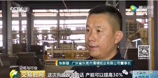 為了應(yīng)對行業(yè)低迷的情況,從事紙箱生產(chǎn)20多年的東莞市清埔紙業(yè)有限公司董事長張新雄,就在2018年下半年開始,對工廠進(jìn)行設(shè)備升級、打造智能化物流,從而減耗增效。 廣東省東莞市清埔紙業(yè)有限公司董事長張新雄:這次升級改造的話,產(chǎn)能可以提高30%,人員可以節(jié)約至少30%,整體的能耗可以降低20%。改造現(xiàn)在已經(jīng)開始進(jìn)行了,我們預(yù)測是2019年6月份可以投產(chǎn)。