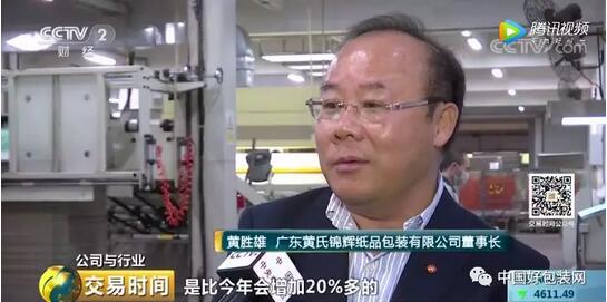廣東黃氏錦輝紙品包裝有限公司董事長黃勝雄:客戶給我們的一個信息說,明年的出口量會比今年增加20%多。目前,我們出口還是主要以東南亞為主,因?yàn)槲覀兊漠a(chǎn)品是跟我們品牌客戶配套包裝的,他們現(xiàn)在很多都遷移到東南亞了。