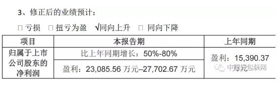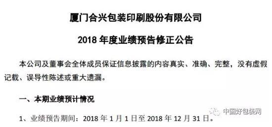 1月30日晚間,合興包裝發(fā)布了《2018年度業(yè)績預(yù)告修正公告》,調(diào)整了2018年1月1日至2018年12月31日期間的業(yè)績預(yù)期。