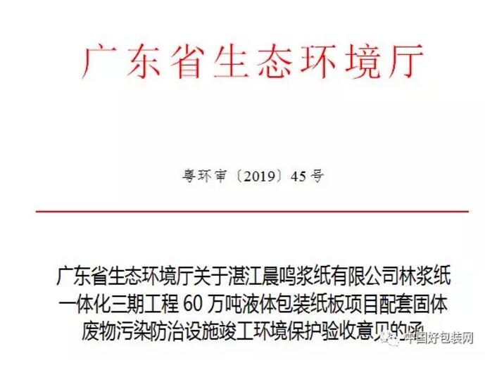 2月18日,廣東省建設(shè)項目環(huán)境保護審批網(wǎng)發(fā)布了“湛江晨鳴林漿紙一體化三期工程60萬噸液體包裝紙板項目環(huán)保驗收公告”。