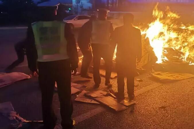 3月11日,中牟交警李金格、朱夢凱等人配合雁鳴湖派出所民警在連霍高速中牟上站口聯合執勤,約19時45分左右,正在指揮交通的民警發現,一輛拉著廢紙箱的小型自卸貨車沿景觀大道自北向南行駛。