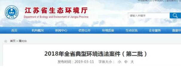 2018年江蘇省典型環境違法案件(第二批)