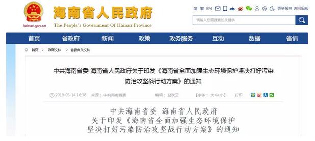 中共海南省委海南省人民政府關(guān)于印發(fā)《海南省全面加強(qiáng)生態(tài)環(huán)境保護(hù)堅決打好污染防治攻堅戰(zhàn)行動方案》的通知 瓊發(fā)〔2019〕6號 各市、縣、自治縣黨委和人民政府,省委各部門,省級國家機(jī)關(guān)各部門,各人民團(tuán)體: 《海南省全面加強(qiáng)生態(tài)環(huán)境保護(hù)堅決打好污染防治攻堅戰(zhàn)行動方案》已經(jīng)省委、省政府同意,現(xiàn)印發(fā)給你們,請結(jié)合實(shí)際認(rèn)真貫徹落實(shí)。 中共海南省委 海南省人民政府 2019年3月9日 (此件公開發(fā)布) 海南省全面加強(qiáng)生態(tài)環(huán)境保護(hù)堅決打好污染防治攻堅戰(zhàn)行動方案 為深入貫徹落實(shí)習(xí)近平生態(tài)文明思想和習(xí)近平總書記在慶祝海南建省辦經(jīng)濟(jì)特區(qū)30周年大會上的重要講話精神,全面貫徹落實(shí)《中共中央、國務(wù)院關(guān)于支持海南全面深化改革開放的指導(dǎo)意見》《中共中央、國務(wù)院關(guān)于全面加強(qiáng)生態(tài)環(huán)境保護(hù)堅決打好污染防治攻堅戰(zhàn)的意見》以及全國生態(tài)環(huán)境保護(hù)大會精神,堅決打好污染防治攻堅戰(zhàn),全力推進(jìn)國家生態(tài)文明試驗區(qū)建設(shè),確保海南生態(tài)環(huán)境質(zhì)量只能更好、不能變差,現(xiàn)結(jié)合實(shí)際,制定本行動方案。 一、大力推行綠色發(fā)展方式和生活方式 (一)促進(jìn)產(chǎn)業(yè)綠色發(fā)展 1.開展區(qū)域空間環(huán)境影響評價,建設(shè)以“三線一單”(生態(tài)保護(hù)紅線、環(huán)境質(zhì)量底線、資源利用上線和生態(tài)環(huán)境準(zhǔn)入清單)為核心的生態(tài)環(huán)境分區(qū)管控體系。 2.實(shí)施產(chǎn)業(yè)準(zhǔn)入負(fù)面清單制度,全面禁止高能耗、高污染、高排放產(chǎn)業(yè)和低端制造業(yè)發(fā)展。優(yōu)化全省產(chǎn)業(yè)園區(qū)布局,新建產(chǎn)業(yè)項目原則上集中在園區(qū)建設(shè)運(yùn)營。各類產(chǎn)業(yè)園區(qū)應(yīng)加快完善園區(qū)環(huán)境基礎(chǔ)設(shè)施建設(shè),將建設(shè)運(yùn)維資金優(yōu)先納入年度投資計劃。洋浦經(jīng)濟(jì)開發(fā)區(qū)、東方工業(yè)園區(qū)、老城經(jīng)濟(jì)開發(fā)區(qū)、海口國家高新技術(shù)產(chǎn)業(yè)開發(fā)區(qū)等重點(diǎn)產(chǎn)業(yè)園區(qū)應(yīng)進(jìn)一步優(yōu)化規(guī)劃布局,按需完成集中供熱、污水收集與處理等基礎(chǔ)設(shè)施建設(shè)和運(yùn)維。 3.開展“散亂污”企業(yè)及集群綜合整治專項行動,實(shí)施網(wǎng)格化監(jiān)管執(zhí)法。 4.全面建設(shè)生態(tài)循環(huán)農(nóng)業(yè)示范省,加快創(chuàng)建農(nóng)業(yè)綠色發(fā)展先行區(qū),推進(jìn)投入品減量化、生產(chǎn)清潔化、產(chǎn)品品牌化、廢棄物資源化、產(chǎn)業(yè)模式生態(tài)化的發(fā)展模式。深入推進(jìn)農(nóng)業(yè)水價綜合改革。建設(shè)現(xiàn)代化海洋牧場,推動漁業(yè)生產(chǎn)由近岸向外海轉(zhuǎn)移、由粗放型向生態(tài)型轉(zhuǎn)變。 5.發(fā)展裝配式建筑。到2020年,政府投資的新建公共建筑,以及社會投資的規(guī)定規(guī)模以上的新建商品住宅項目和商業(yè)、辦公等公共建筑項目,具備條件的全部采用裝配式方式建造。到2022年,具備條件的新建建筑原則上全部采用裝配式方式建造。 6.深入推進(jìn)排污許可制度改革,2020年底前完成全省固定污染源的發(fā)證全覆蓋,實(shí)現(xiàn)對固定污染源的全過程監(jiān)管和多污染物協(xié)同控制。嚴(yán)格實(shí)施按證排污、按證執(zhí)法,全面推進(jìn)固定污染源達(dá)標(biāo)排放。 (二)調(diào)整優(yōu)化能源結(jié)構(gòu) 7.加快構(gòu)建安全、綠色、集約、高效的清潔能源供應(yīng)體系,到2020年清潔能源裝機(jī)比重達(dá)到60%以上。推動清潔低碳能源優(yōu)先上網(wǎng)。大力推行“削煤減油”,禁止新增煤電,分階段逐步淘汰現(xiàn)有燃煤機(jī)組。2020年底前,全省基本淘汰35蒸噸/小時及以下燃煤鍋爐。 8.各市縣在2019年6月底前完成“高污染燃料禁燃區(qū)”劃定和調(diào)整。在禁燃區(qū)內(nèi),禁止銷售、燃用高污染燃料。全省范圍內(nèi)禁止燃用石油焦。建立油品煤炭質(zhì)量定期抽檢機(jī)制。 9.開展工業(yè)爐窯綜合整治,全面淘汰不達(dá)標(biāo)工業(yè)爐窯,推動工業(yè)爐窯使用電、天然氣等清潔能源或集中供熱。 10.全面實(shí)施城鎮(zhèn)燃?xì)夤こ探ㄔO(shè),推進(jìn)燃?xì)庀锣l(xiāng)進(jìn)村“氣代柴薪”,構(gòu)建覆蓋城鄉(xiāng)的燃?xì)夤芫W(wǎng)。按需規(guī)劃建設(shè)一批燃?xì)獍l(fā)電項目。 11.推進(jìn)建設(shè)昌江核電二期項目,積極推動小型堆示范項目,同步配套建設(shè)抽水蓄能電站。 (三)推行綠色生活方式 12.積極創(chuàng)建節(jié)約型機(jī)關(guān)、綠色家庭、綠色學(xué)校、綠色社區(qū)、綠色出行、綠色商場、綠色建筑等,各相關(guān)職能部門出臺具體實(shí)施方案和配套標(biāo)準(zhǔn)。 13.出臺禁止生產(chǎn)銷售使用一次性不可降解塑料制品的法規(guī)制度、實(shí)施方案和名錄,強(qiáng)化市場監(jiān)督執(zhí)法,運(yùn)用經(jīng)濟(jì)等調(diào)控手段,推廣全生物降解塑料替代產(chǎn)品。2020年底前全省范圍
