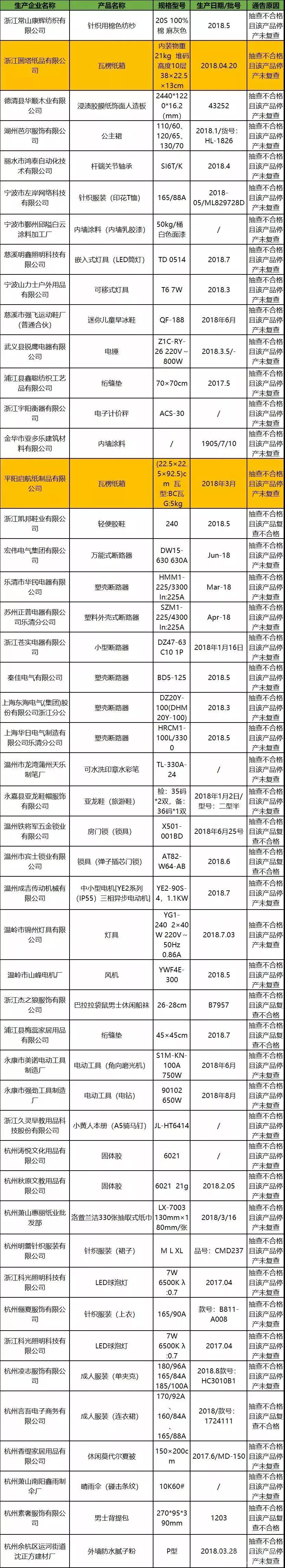 近日,浙江省市場監督管理局公布質量監督抽查不合格且逾期未改正的企業名單(2019年第1批)。