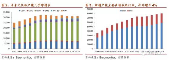 基于2019年新增產(chǎn)能計(jì)劃,從下圖來看,未來2年新增產(chǎn)能主要是箱板紙,2017年5000萬噸達(dá)到2019年5600萬噸左右,過去3年箱板紙行業(yè)需求增長一般維持在2~3%左右,其中最大的推動(dòng)因素是快遞行業(yè)。我們認(rèn)為,造紙行業(yè)整體供需格局依然穩(wěn)健,供應(yīng)壓力主要體現(xiàn)在包裝紙行業(yè)上,而文化紙行業(yè)新增產(chǎn)能幾乎為零,如果假設(shè)未來紙品需求依然穩(wěn)健,未來造紙行業(yè)供需壓力無須過于擔(dān)心。