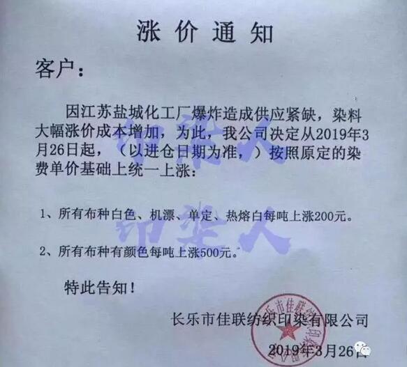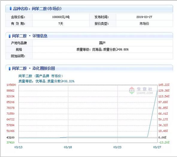 ▲染料企業(yè)掀起漲價(jià)潮,廣東、福建、浙江連發(fā)7份染費(fèi)漲價(jià)通知 間苯二胺 價(jià)格瘋狂上漲!