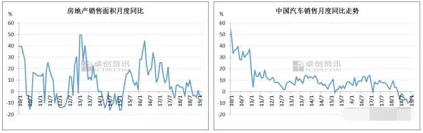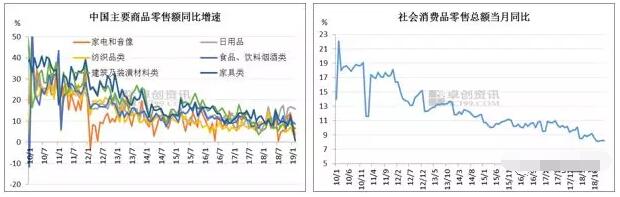 首先我們先看一國(guó)內(nèi)最主要的兩大消費(fèi)市場(chǎng),房地產(chǎn)和汽車。目前來看,這兩大消費(fèi)領(lǐng)域均表現(xiàn)較弱。房地產(chǎn)方面,數(shù)據(jù)顯示,1-2 月份全國(guó)商品房銷售面積同比下降3.6%,出現(xiàn)負(fù)增長(zhǎng),較2018年全年回落4.9個(gè)百分點(diǎn),房地產(chǎn)銷售面積已經(jīng)進(jìn)入下行通道。此外,融資限制未解除,棚改政策邊際收緊,都將對(duì)未來國(guó)內(nèi)房地產(chǎn)銷售形成較強(qiáng)壓力。 汽車方面,根據(jù)乘聯(lián)會(huì)最新的數(shù)據(jù)顯示,中國(guó)3月份廣義乘用車零售銷量178萬輛,同比減少12%,銷量連續(xù)第10個(gè)月同比下跌。由于我國(guó)汽車市場(chǎng)進(jìn)入普及后期,行業(yè)增速中樞下降,同時(shí)疊加宏觀經(jīng)濟(jì)下行的影響,汽車銷售年內(nèi)仍將承壓。 盡管房地產(chǎn)和汽車并不直接影響包裝紙,但房地產(chǎn)市場(chǎng)所衍生出來的建筑裝潢、家電、家具等一系列后續(xù)消費(fèi),都是包裝紙的重要領(lǐng)域。同樣,汽車零部件也需要大量的紙包裝。所以這兩個(gè)行業(yè)銷售下滑,對(duì)包裝紙的需求打壓還是很大。 主要商品銷售增速或拐點(diǎn)向下
