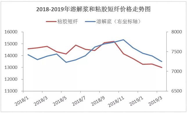 2019年一季度國產(chǎn)溶解漿價格呈現(xiàn)下行趨勢。一季度國產(chǎn)溶解漿均價7367元/噸,環(huán)比下降4.47%,同比下降0.07%。分月份來看,1月份湖南駿泰檢修,福建青山溶解漿線轉(zhuǎn)產(chǎn)本色漿,供應減少,但年初粘短市場價格延續(xù)2018年四季度下行態(tài)勢,溶解漿價格缺乏支撐,承壓下行50-100元/噸;2月份春節(jié)期間漿市處休市狀態(tài),實單成交偏少,粘短廠家訂單執(zhí)行緩慢,庫存壓力增加,原料采買積極性降低,國產(chǎn)溶解漿價格下降150元/噸;3月份下游粘短市場處去庫存階段,降價吸單情況增多,下旬粘短廠家開工率降低,溶解漿市場放量有限,漿價窄幅下降100元/噸。 一季度影響溶解漿價格的最主要因素是需求面。受粘短行業(yè)利潤率降低影響,2019年一季度末下游粘短廠家開機率約72%,同比下降10%。溶解漿市場需求持續(xù)低迷,漿價承壓下行。 二季度溶解漿市場行情展望 供應:山東太陽發(fā)布4月份漿線檢修計劃,3條漿線輪檢,預計影響產(chǎn)能1.4萬產(chǎn)量,其他漿廠暫無檢修計劃。 需求:3月檢修粘短廠家檢修,預計5月中旬恢復生產(chǎn)。高端企業(yè)計劃于4月底完成所持30萬噸新增產(chǎn)能投產(chǎn)。 政策:4月1日制造業(yè)企業(yè)增值稅下調(diào)3%;商務部對進口溶解漿5%的反傾銷稅在到期后不再繼續(xù)征收。 綜合來看,粘短價格低位運行,廠家成本壓力較大,預計原料備貨積極性不高,需求面短期難有明顯提升。進口溶解漿反傾銷稅取消,進口漿價格或小幅下行,沖擊國產(chǎn)漿價格。分析認為,二季度溶解漿市場仍以剛需成交為主,漿價穩(wěn)中偏弱整理。