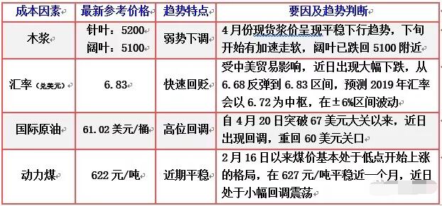 五、價哨所 20190509: 進入5月,整體市場因素利空偏多,主要來自于中美貿易戰戰火又起,木漿市場疲態下滑,人民幣匯率波動加大,疊加紙張2-4月的連續上調,紙貿也開始慎重加大降庫,但整體還算平穩,因上半年新增投產的進度稍明顯預期進度,整體供求基本平衡,各方庫存基本不大,廠家接單基本正常,預計紙張價格在紙廠繼續喊漲的推動下,還能平穩一段時間,壓力窗口預計會看到6月中旬。因漿價回落,紙價上漲,紙廠的經營壓力有所緩解。因紙張市場信息越來越透明,各方均有慎重運營的經驗判斷,預計僵持期會拉長直至供求壓力真正出現。