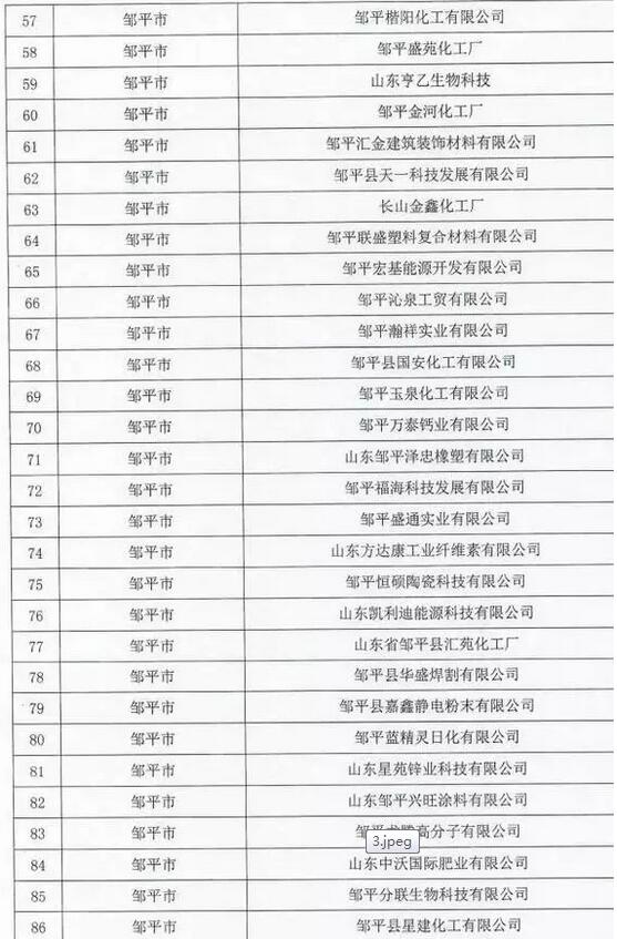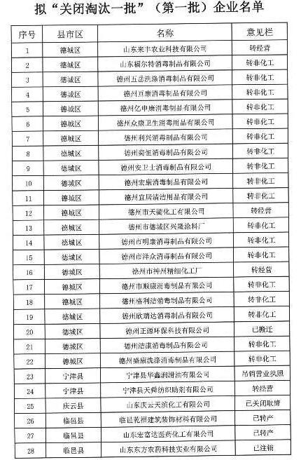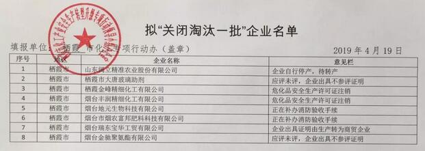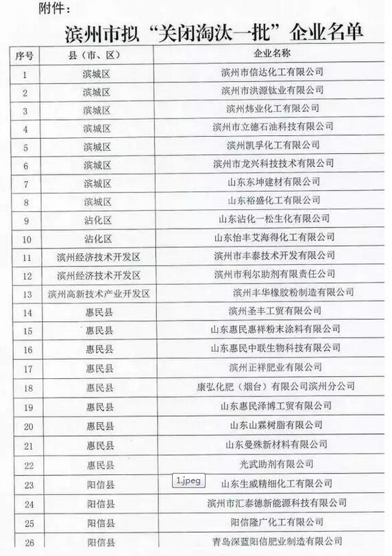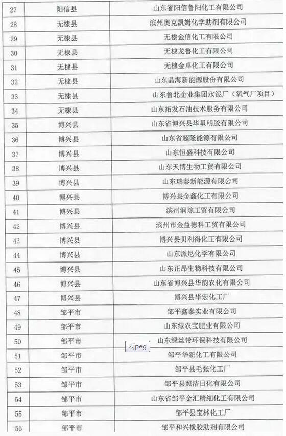濱州擬“關(guān)閉淘汰一批”(第一批)化工生產(chǎn)企業(yè)名單