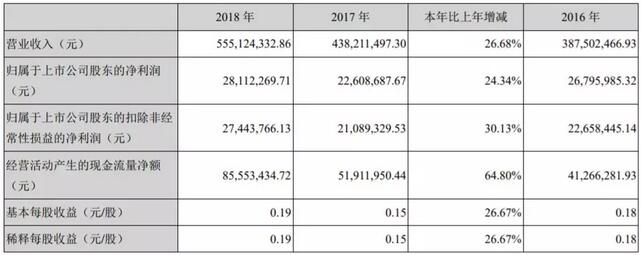 2018年,西安環球印務股份有限公司實現營業收入55,512.43萬元,同比增長26.68%,實現歸屬于上市公司股東的凈利潤2,811.23萬元,同比增長24.34%,實現歸屬于上市公司股東的扣除非經常性損益的凈利潤2,744.38萬元,同比增長30.13%,主要系報告期公司收購了領凱網絡科技70%股權,并于2018年10月起納入合并報表范圍,2018年10-12月, 領凱網絡科技實現凈利潤779.08萬元, 實現歸屬于上市公司股東的凈利潤545.35萬元,占公司合并歸屬于上市公司股東凈利潤的19.40%。