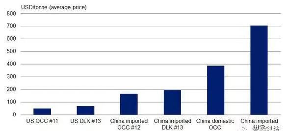 圖 2 — 中國與美國的纖維價格 這為我們提供了一個非常有趣的潛在機會,回收漿還沒有被完全利用。中國政府將其視為是一個獨立的產(chǎn)品,有可能會進口,這是一個非常重要的機會。 目前來看這只是一個小產(chǎn)品。2018年,中國進口了約有30萬噸再生纖維,通常來自各地的纖維質(zhì)量參差不齊。 而且目前產(chǎn)量可能是不可持續(xù)的。在越南,印度尼西亞,當?shù)卣捎谙嗤脑颍瑩鷳n不斷加重,他們認為,隨著原材料進口量的增加,所產(chǎn)生的廢水和固體廢物的問題將越發(fā)嚴重。 在再生纖維生產(chǎn)地,例如北美和歐洲有非常好的機會。 可以想象到,在進出口港口或者人口眾多的地區(qū)附近會有纖維紙漿廠,像是美國西海岸,鹿特丹、安特衛(wèi)普,那里都有大量的纖維供應鏈。 國內(nèi)與美國舊瓦楞紙箱差價約2269元/噸 中國反向整合形成壟斷市場 中國反向整合形成壟斷市場。 許多中國的紙板生產(chǎn)商已經(jīng)在市場上建立了大量的再生纖維采購組織,這將是反向整合的另一種方式。 中國主要的紙和紙板生產(chǎn)商在反向整合以確保纖維供應方面有著相當長的歷史,包括在國外收購紙漿廠。 從中國的角度來看,回收紙漿的情況,無疑是以經(jīng)濟為基礎(chǔ)的。國內(nèi)收集的舊瓦楞紙箱與在美國購買的舊瓦楞紙箱之間的差價目前約為330美元/噸(約2269元/噸)。 問題是價格差異是否能證明光地投資是合理的,這也是價格差異能持續(xù)多久的問題。然而,這就好比是中國的紙漿廠愿意進口非常昂貴的木屑來維持其工廠的運轉(zhuǎn)。 恰巧的是,中國領(lǐng)先的紙板生產(chǎn)商玖龍紙業(yè)已經(jīng)在美國投產(chǎn),超過100萬噸的再生紙漿出口到中國。理文紙業(yè)已宣布在亞洲新建工廠。 紙和紙板商要重新考慮纖維采購策略 成功者將制定并確定最適合這些新產(chǎn)品的用途 纖維戰(zhàn)略始終是成功的關(guān)鍵。 目前,中國行動只是在刺激現(xiàn)有的發(fā)展趨勢,使之比先前預期的更快。這兩個主要趨勢是,再生纖維市場更加緊俏,對再生纖維質(zhì)量惡化的擔憂也日益增加。 如果中國繼續(xù)其目前的軌道,允許再生纖維進口,雖然數(shù)量限制,但要求最好的質(zhì)量,那么早期出口的低質(zhì)量纖維仍將留在美國和歐洲。 了解纖維市場的動態(tài)變化具有戰(zhàn)略意義。 很明顯,大多數(shù)紙和紙板生產(chǎn)商需要重新考慮其纖維采購策略,以應對供應結(jié)構(gòu)的變化。 目前還不清楚中國企業(yè)愿意或能夠在多大程度上采取反向整合策略,以及中國市場在多大程度上被壟斷。 還要考慮一下商業(yè)層面,因為一家造紙廠的紙制品性能可能會因配料質(zhì)量的變化而改變。 隨著紙張性能的變化,對各種最終應用途徑的適用性以及對客戶的價值也會發(fā)生變化。 最后,再生紙漿產(chǎn)品的新領(lǐng)域正在興起。為了抓住這些機會,需要從頭開始制定全新的戰(zhàn)略。 成功者將制定纖維采購策略,并確定最適合這些新產(chǎn)品的用途。