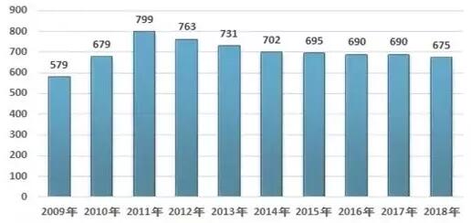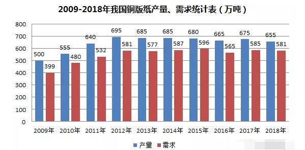2009-2018年我國銅版紙產(chǎn)能統(tǒng)計圖