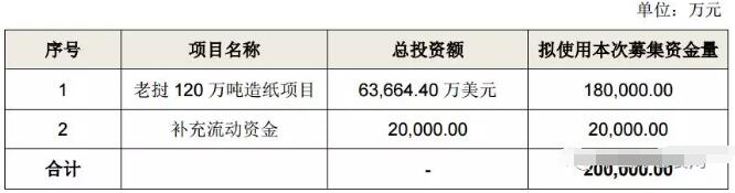 7月18日,太陽紙業(yè)披露定增募資預(yù)案:公司擬向包括控股股東太陽控股在內(nèi)的不超過10名特定投資者,非公開發(fā)行不超5.18億股,擬募資總金額不超20億元。此次定增募資將主要用于老撾120萬噸造紙項(xiàng)目并補(bǔ)充流動資金。 值得一提的是,老撾120萬噸造紙項(xiàng)目實(shí)施后預(yù)計(jì)年增營收6.42億美元,年增利潤1.05億美元,稅前靜態(tài)投資回收期6.57年(包括建設(shè)2年)。本次募集的資金中,有18億元用于此項(xiàng)目。