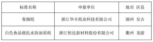 2019年7月12日,浙江省品牌建設(shè)聯(lián)合會(huì)發(fā)布了《2019年第二批“浙江制造”標(biāo)準(zhǔn)制定計(jì)劃》,包括各類(lèi)標(biāo)準(zhǔn)共94項(xiàng)。其中涉及特種紙2項(xiàng)。具體如下: