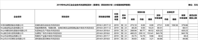 2019年中山市工業企業技術改造項目事后獎補(普惠性)項目扶持計劃,中山聯合鴻興造紙有限公司等96個項目擬獲扶持,其中有6家造紙印刷包裝企業,扶持金額總計約2.2億元。 6家印刷包裝企業獲獎補,最高一家補助金額超800萬元 根據《關于開展2019年中山市工業企業技術改造項目事后獎補(普惠性)專題資金申報的通知》(中工信〔2019〕116號)要求,中山市工業和信息化局組織了2019年中山市工業企業技術改造項目事后獎補(普惠性)專題資金申報工作。經過了企業申報、鎮區初審和現場核查、專家評審和獎補資金核算,征求市財政局、稅務局、統計局部門意見,局產業扶持專項資金審核委員會審核和局黨組審議等程序,現將2019年中山市工業企業技術改造事后獎補(普惠性)項目扶持計劃予以公示。